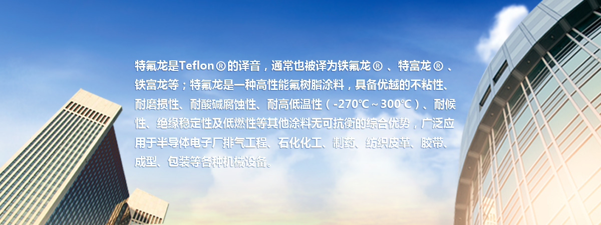特氟龍是Teflon的譯音,通常也被譯為鐵氟龍、特富龍、鐵富龍等;特氟龍是一種高性能氟樹(shù)脂涂料,具備優(yōu)越的不粘性、耐磨損性、耐酸堿腐蝕性、耐高低溫性(-270℃~300℃)、耐候性、絕緣穩(wěn)定性及低燃性等其他涂料無(wú)可抗衡的綜合優(yōu)勢(shì),廣泛應(yīng)用于半導(dǎo)體電子廠(chǎng)排氣工程、石化化工、制藥、紡織皮革、膠帶、成型、包裝等各種機(jī)械設(shè)備。